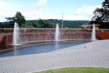 豊かな樹木と季節ごとに咲く花々が楽しめる憩いの場。天に向かってしぶきをあげる噴水が美しい。